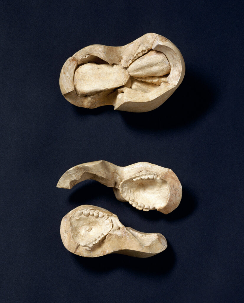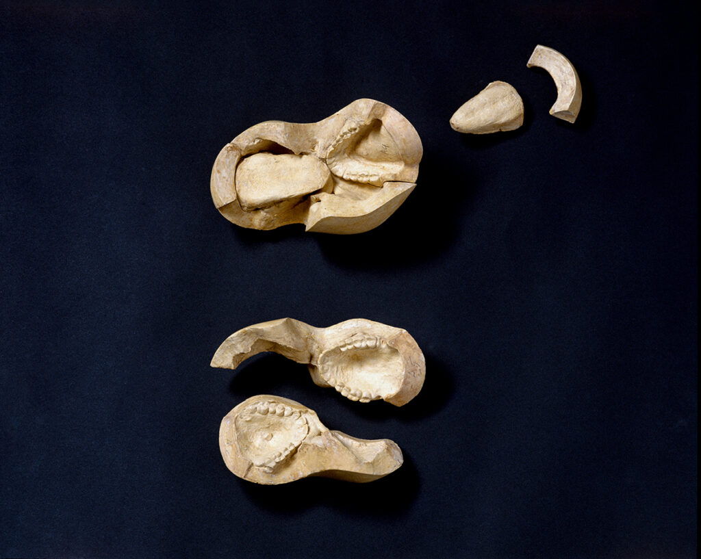Kuss, extrahiert und geteilt, 2000, lebensgross, 8-teilig, Gips mit Wachs infiltriert